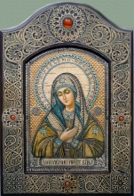 The Mother Of God Of "Tender Feeling" Serafimo-Diveevskaya - pine, cut out birch, oil, serpentine marble, amber by Svetlana Klunduk - icons.