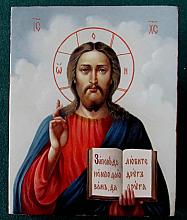 Savior - icon, Fedoskino lacquer painting technique