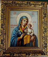 Kazan Gods Mother - Virgin With A Child - icon, Fedoskino lacquered painting