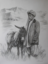 Boy With Donkey - charcoal, paper by Orlenov Artur / Graphics